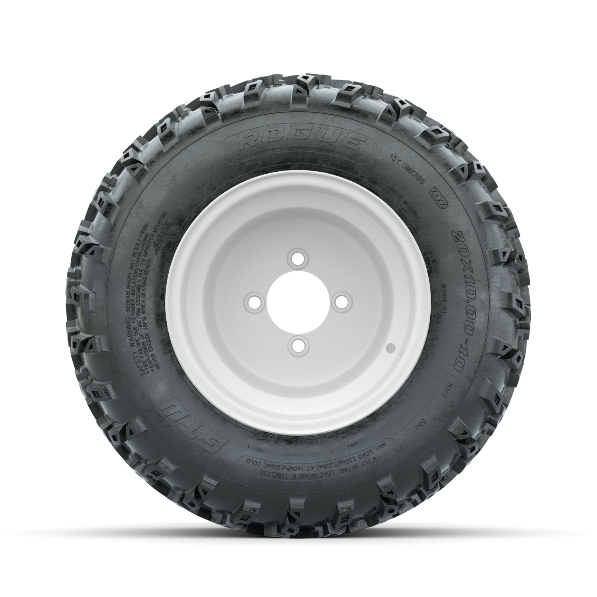 GTW Steel White 3:5 Offset 10 in Wheels with 20x10.00-10 Rogue All Terrain Tires – Full Set
